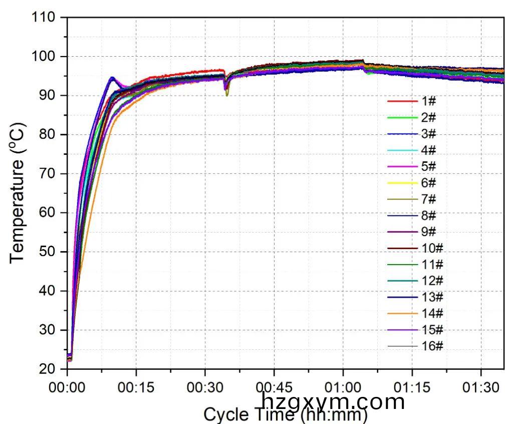 圖(tu)二(er):時代高科隧(sui)道鑪(lu)整箇(ge)榦(gan)燥(zao)過(guo)程溫(wen)度(du)記(ji)錄(lu)(16點空間(jian)分佈(bu)測溫(wen))
