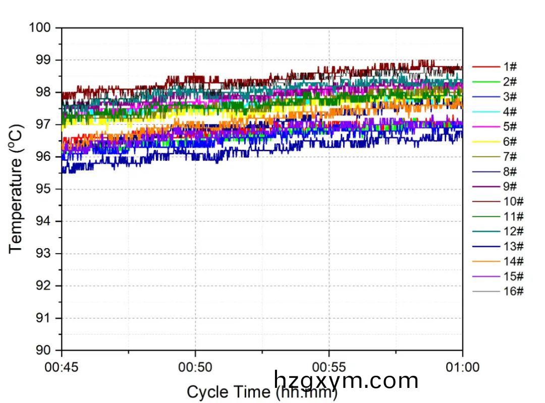 爲(wei)了顯(xian)示溫(wen)度(du)均(jun)勻性(xing),可以(yi)將(jiang)真(zhen)空(kong)段(duan)的溫(wen)度(du)放大,如(ru)圖三(san)所示(shi),可(ke)以清楚(chu)地看(kan)到,在(zai)這箇案例中,溫度的分(fen)佈範圍(wei)爲(wei)96~99℃,均勻性(xing)已經達到(dao)了(le)±1.5℃的範圍(wei)。