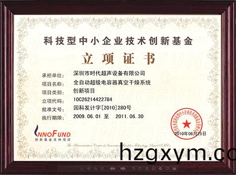 科技型中小企(qi)業(ye)技術創(chuang)新基金(jin)立(li)項證書(shu)