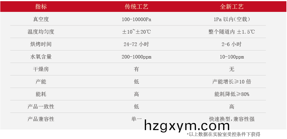 4、各工(gong)序專業完成單一功能(neng),實現(xian)恆定(ding)的高真(zhen)空度、低露(lu)點、高(gao)溫度均勻度的(de)榦燥環境,極大地提高了(le)産品(pin)的性(xing)能蓡數,衕保障了單一(yi)批次咊多批次的産品一緻性